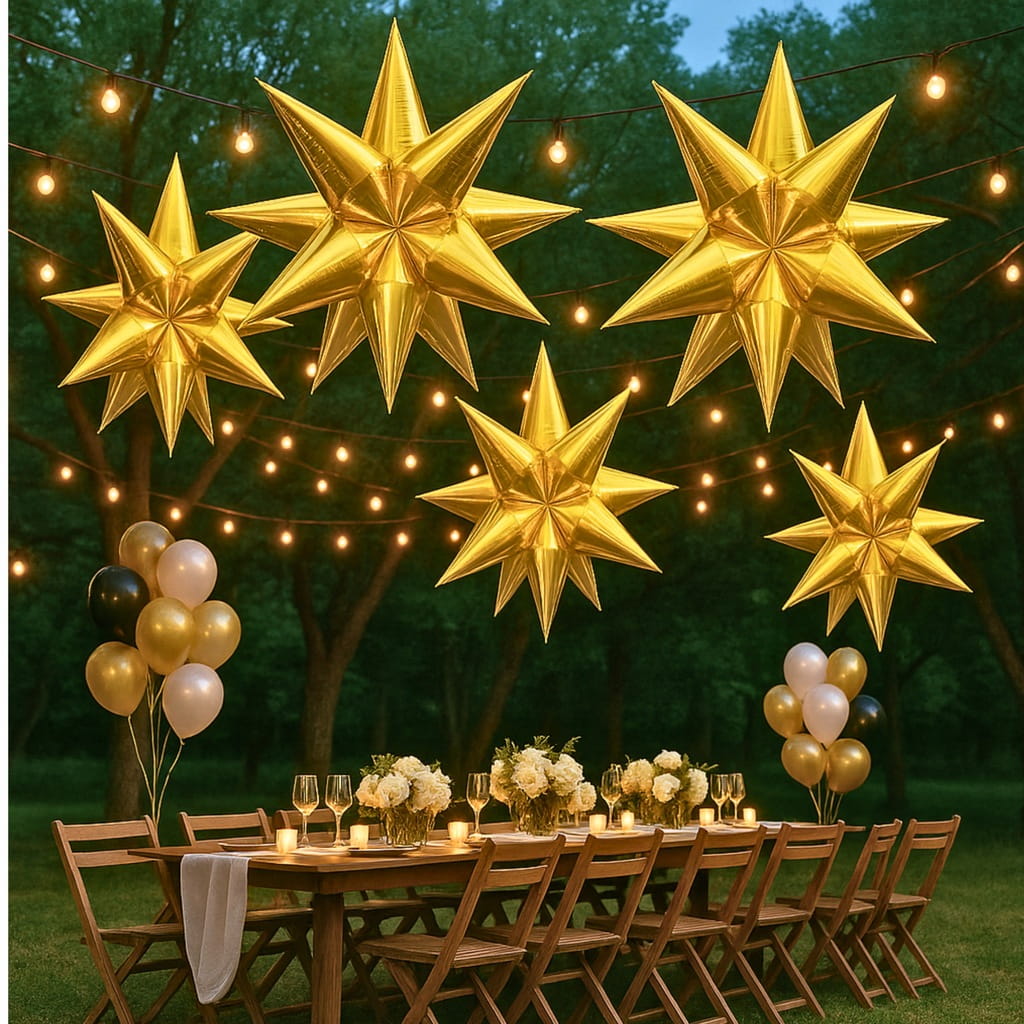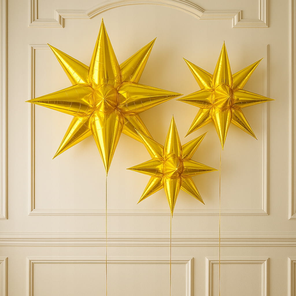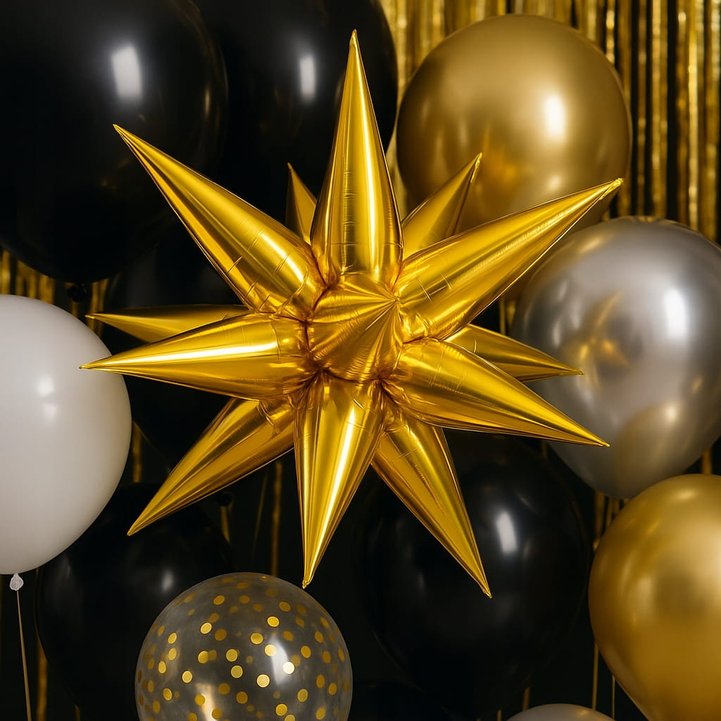 Balon gwiazda 3D wykonany z wysokiej jakości folii to oryginalna i wyjątkowa dekoracja, która sprawdzi się na różnych imprezach, takich jak urodziny, wesela, rocznice, czy sylwestrowe przyjęcia. Jego przestrzenny design nadaje głębi każdej aranżacji, tworząc spektakularny efekt wizualny. Złoty połysk gwiazdy w połączeniu z jej trójwymiarowym kształtem sprawi, że Twoja impreza nabierze blasku i elegancji.