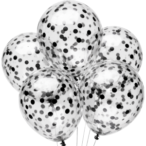 - ✔️ Przezroczyste balony z czarnym konfetti – modny, elegancki design