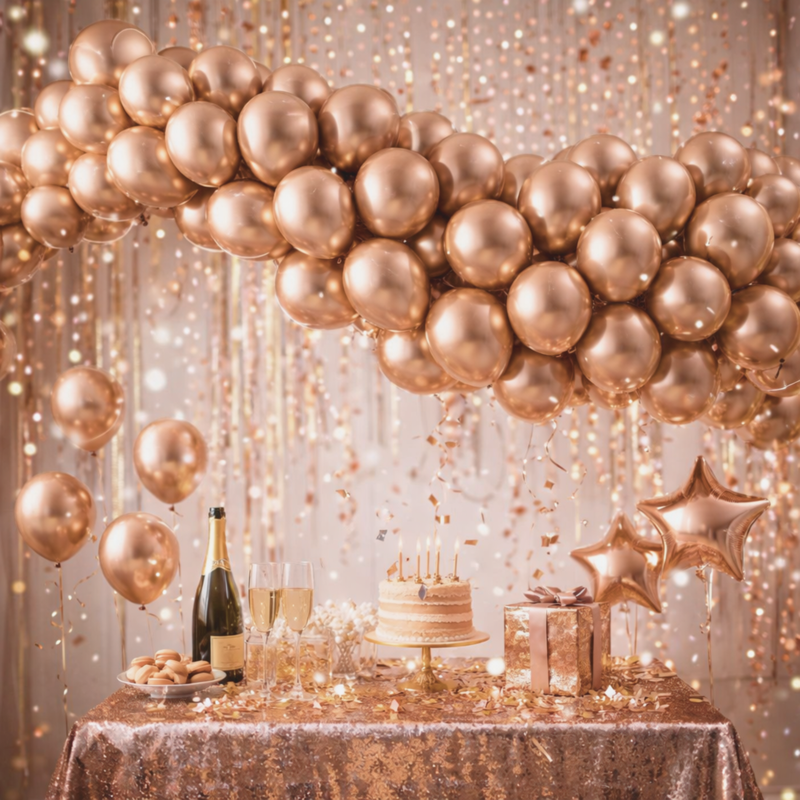 Balony różowe złoto glossy shiny to elegancka i efektowna dekoracja, która natychmiast przyciąga wzrok. Ich metalizowana, lśniąca powierzchnia pięknie odbija światło, tworząc luksusowy efekt glamour – idealny na wyjątkowe okazje i modne aranżacje balonowe.