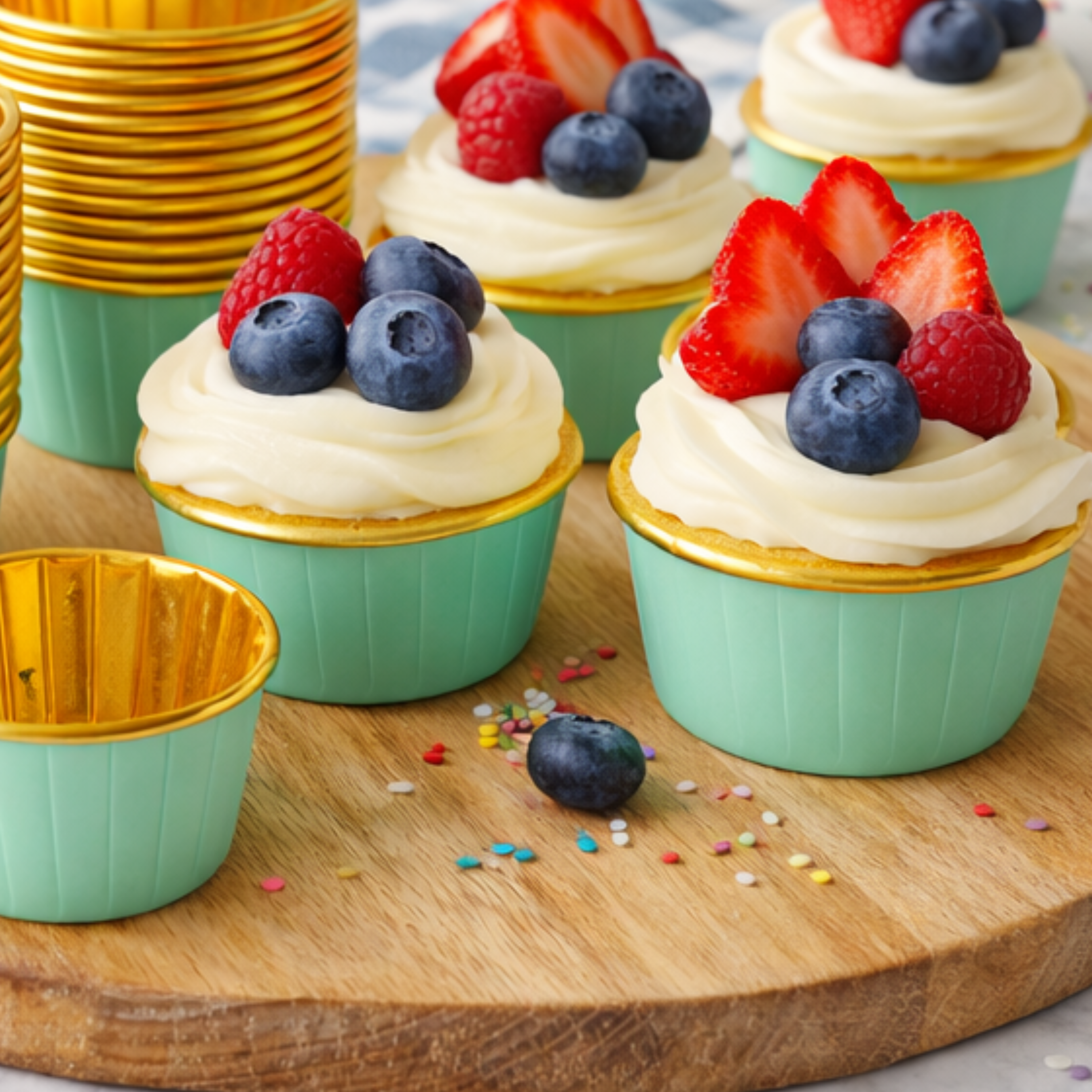 Miętowo-złote papilotki na muffinki to piękny dodatek, który dodaje uroku i elegancji słodkim wypiekom.