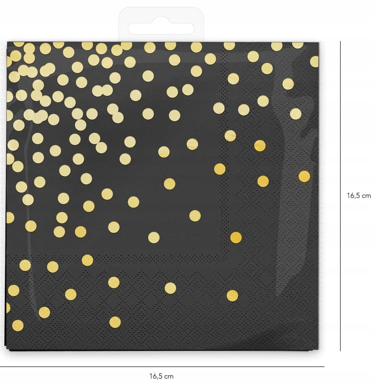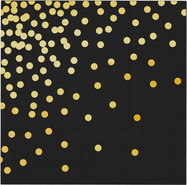 Dodaj niepowtarzalny akcent do swojego stołu i spraw, aby każde przyjęcie było wyjątkowe dzięki serwetkom czarnym ze złotymi kropkami!