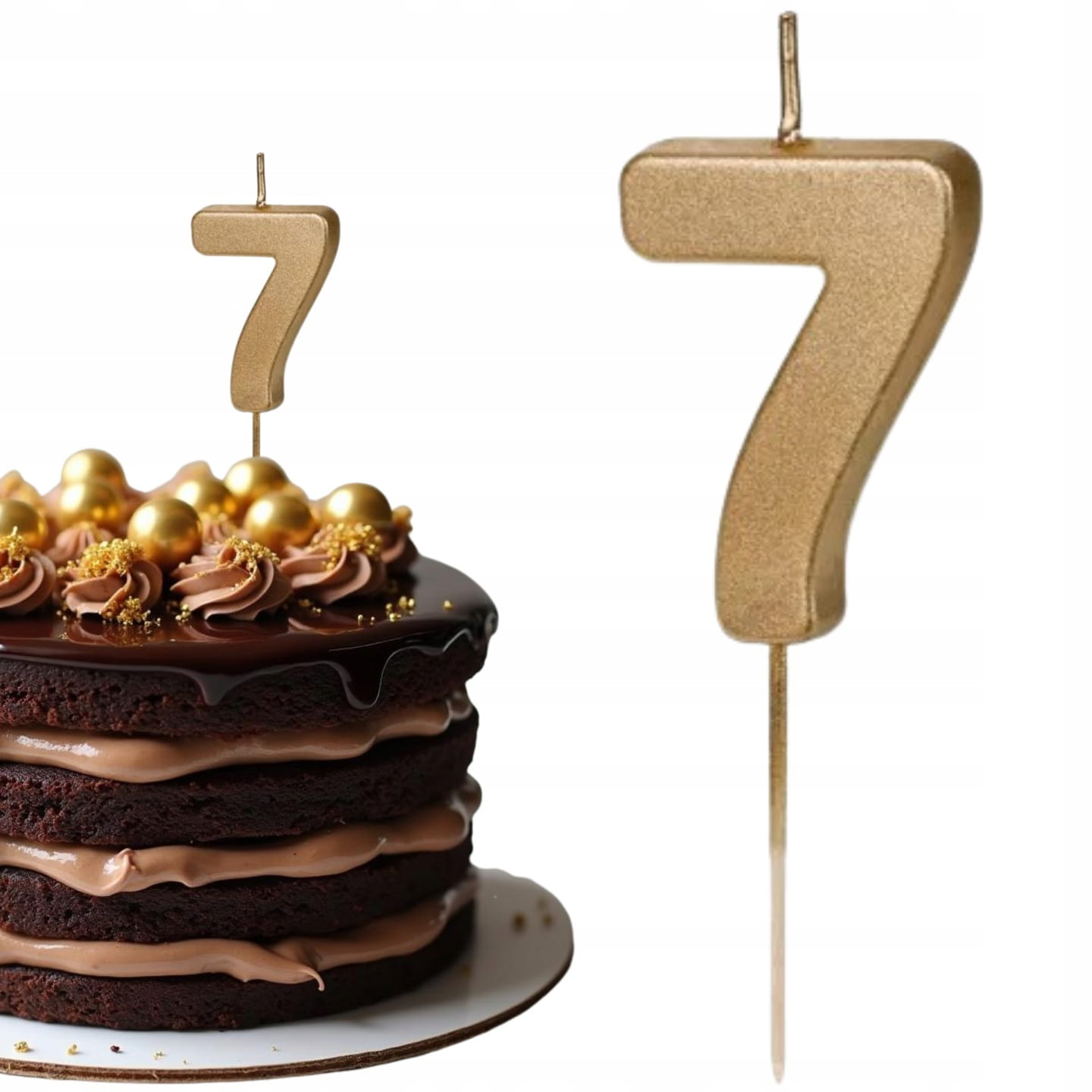 Świeczka na tort cyfra 7 ZŁOTA na urodziny metalizowana dekoracja