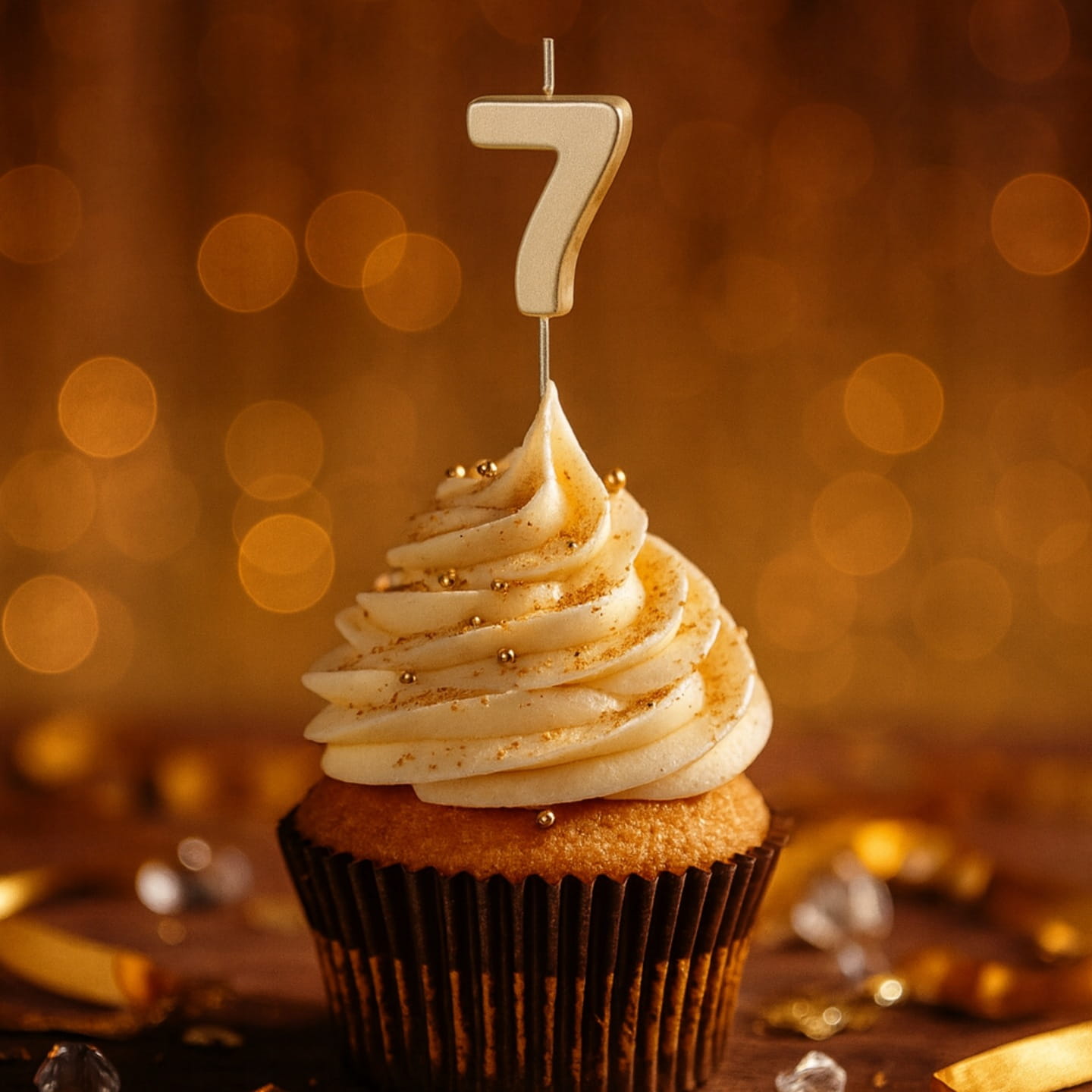 Podkreśl wyjątkowość urodzin dzięki złotej świeczce w kształcie cyfry 7. To elegancki, a zarazem klasyczny akcent, który pięknie prezentuje się na torcie. Patyczek świeczki dopuszczony jest do kontaktu z żywnością, co zapewnia pełne bezpieczeństwo użycia.